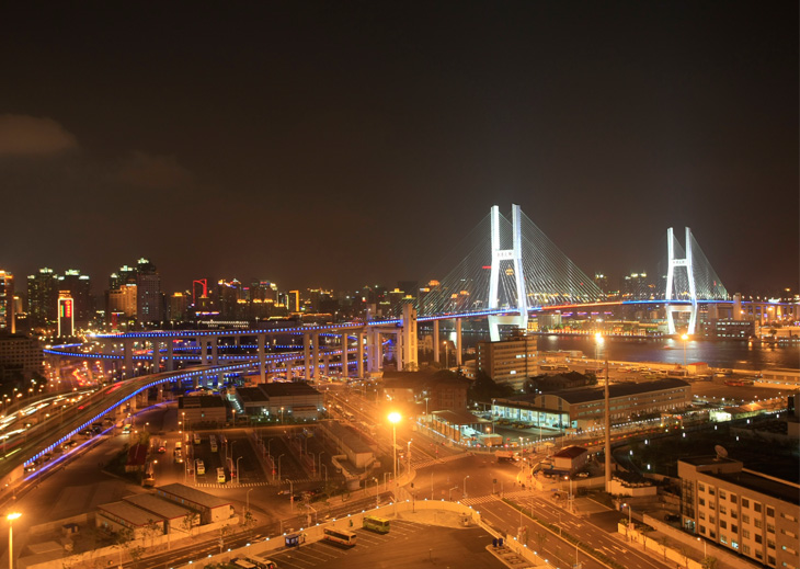 上海延安路高架是上海著名的重要公路。其景觀照明工程長度17公里,于2010年初完成。道路的 主要結構是藍色,采用洗滌燈,鼎暉HR511光源。所有的燈都不會閃爍,因為它們是用恒流電源 驅動的。這些年這個更新項目幫助政府節省了巨大的電力。